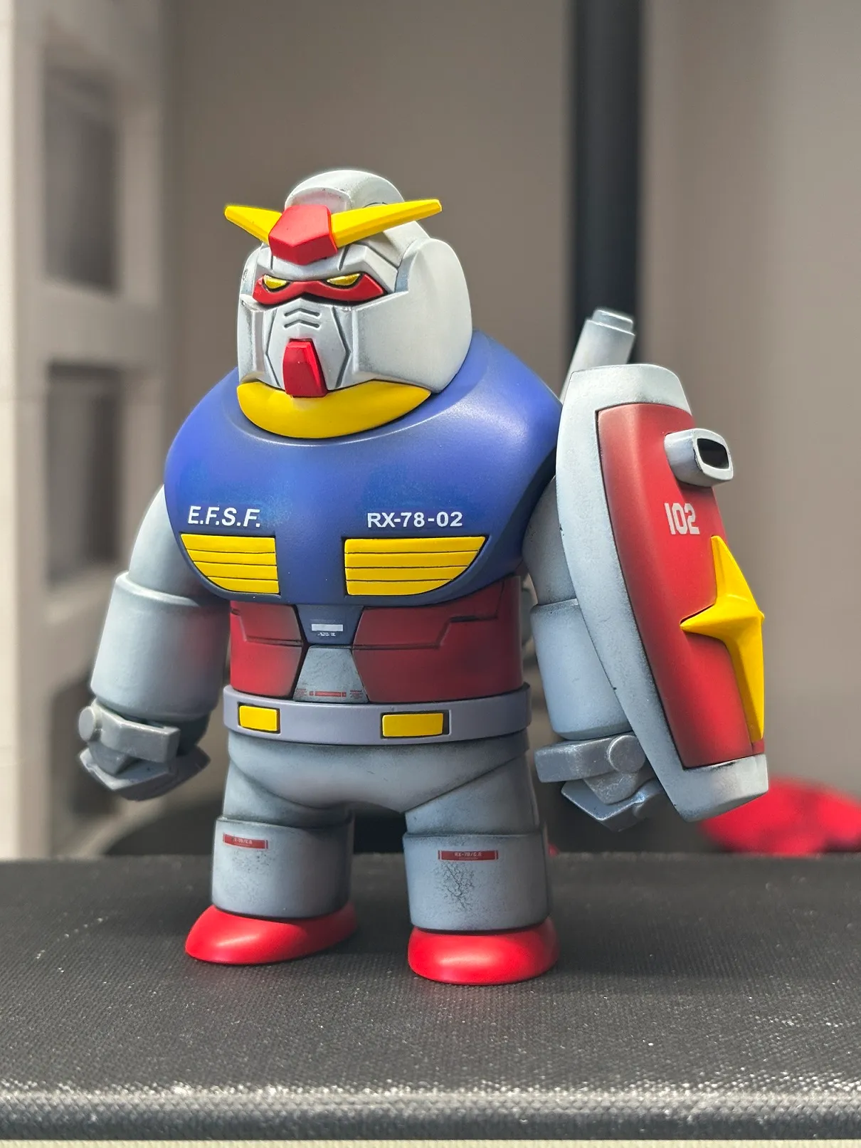 头和手都做了无缝,观感提升好多,其他的全是左右合的地方就不弄了,零件质量巨差,不愧10元的胶。但喷涂完可就不一样了。眼睛最后装的时候翻车了,没有对准也没提前把两侧打磨薄,最后就装歪了卡在那里了,结果观感还行,歪鼻子中年老登的感觉更强了。虽然是烂胶,但因为有磁吸外加造型也不错,还是挺好玩的。